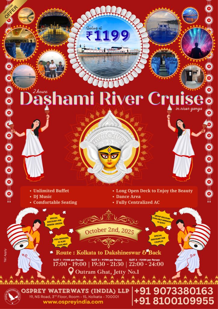 - Puja offer: Hire full AC cruise to see Puja, 160 capacity passengers, hire charges start from only 35K Onwards for 2 hours.